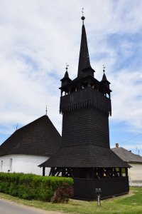A templom előtt álló, 1791-ben készített fa harangtorony viszonylag alacsony törzsű. Alul a szoknya alatti rész teljesen zárt, fenn a galéria fölé nyolcszögletű sisakalj borul, ami ritkaság a Felső-Tisza-vidéken.